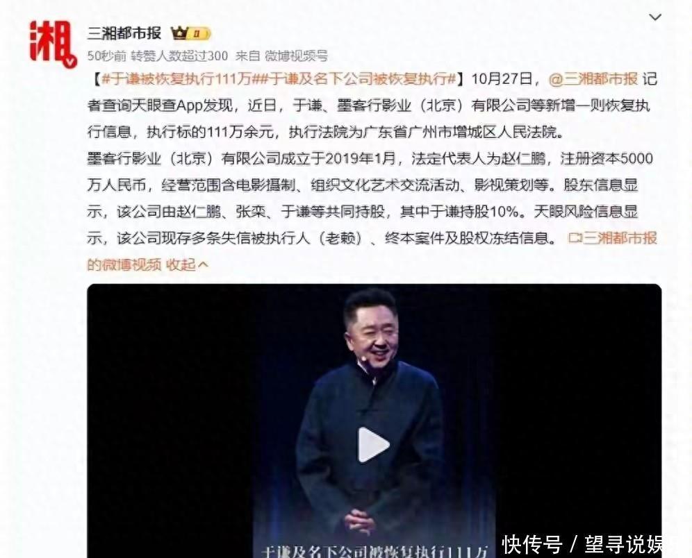 于谦会因为111万执行案毁了多年好口碑吗?这一疑问近日因一则工商动态引发热议。